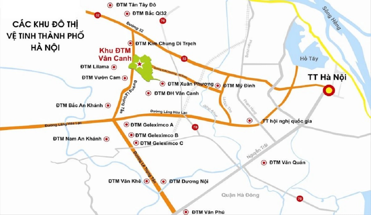 • Đầu nối với trục đường 70 đi lên ngã tư Nhổn giao cắt với đường 32 (ĐH Công Nghiệp): Chỉ 1,5 km